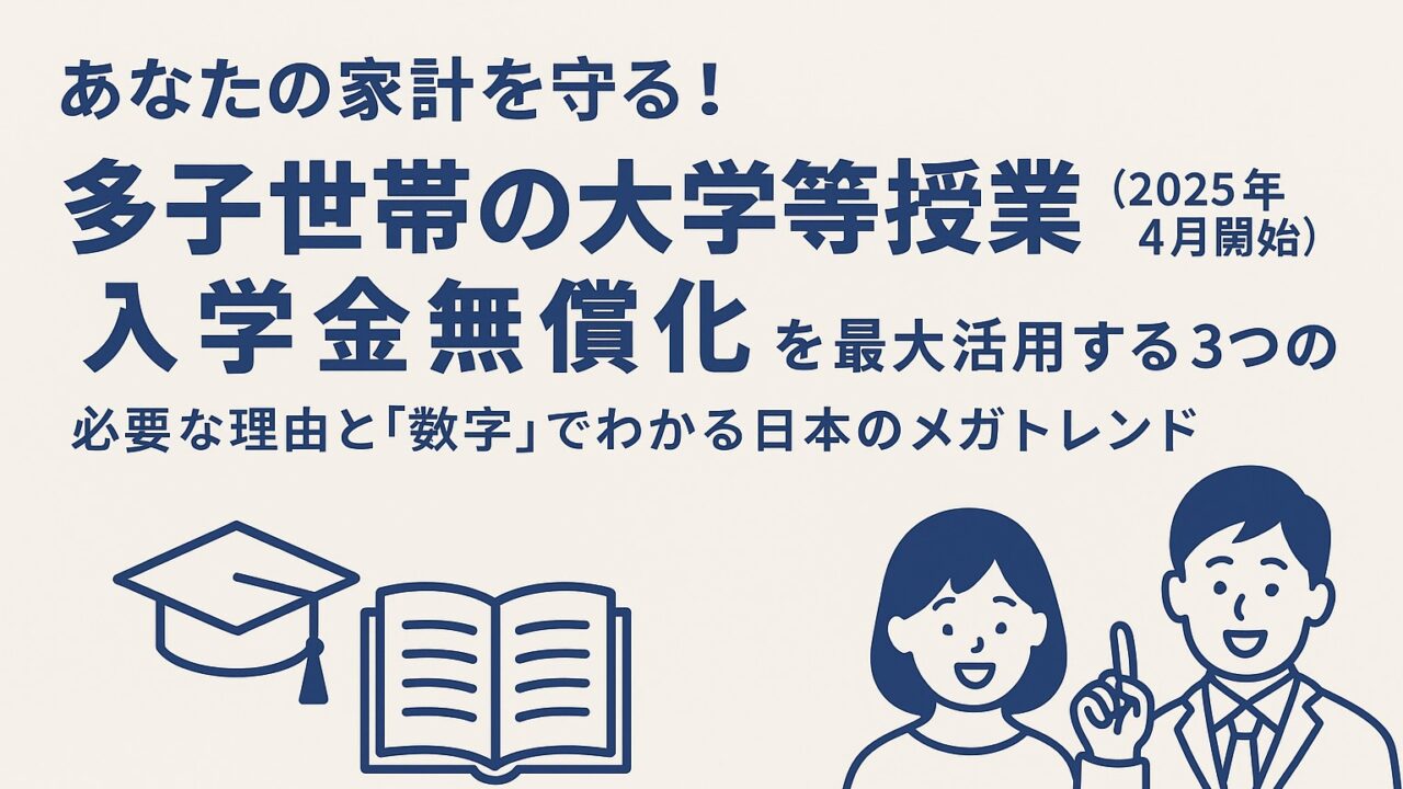 あなたの家計を守る!「多子世帯の大学等授業料・入学金無償化」(2025年4月開始)を最大活用する3つの方法|必要な理由と“数字”でわかる日本のメガトレンド
