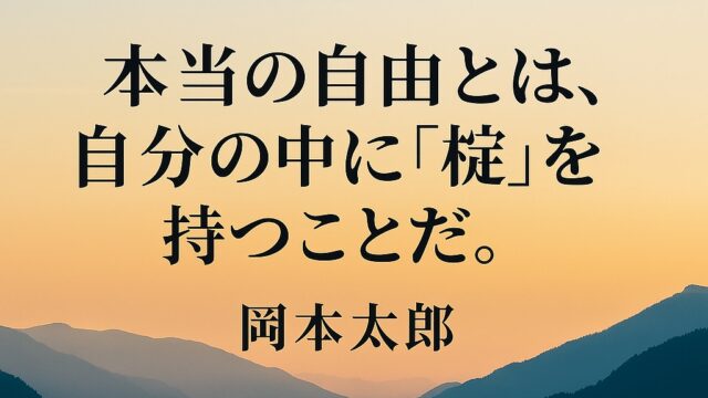おすすめ書籍 【岡本太郎の名言】本当の自由とは、自分の中に“掟”を持つことだ|掟を守ることで得られる成長と自由 2025年7月18日 れおなるど・ゆう れおなるど・ゆう 自分の中の掟を持つ事が、人を成長させその先に本当の自由を手に入れるという事です。 そうのことを教えてくれた名言につ …