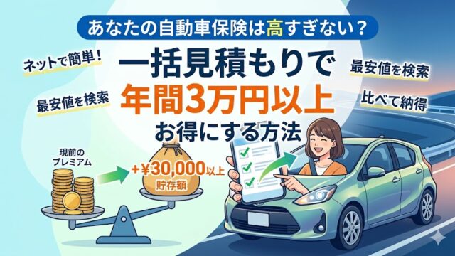 必要な保険 あなたの自動車保険は高すぎない?一括見積もりで年間3万円以上お得にする方法 2025年7月22日 れおなるど・ゆう れおなるど・ゆう 車の保険、なんとなく更新していませんか?私は会社員時代、団体割引が効いたおかげで比較的安く契約できていました。しかし、退 …