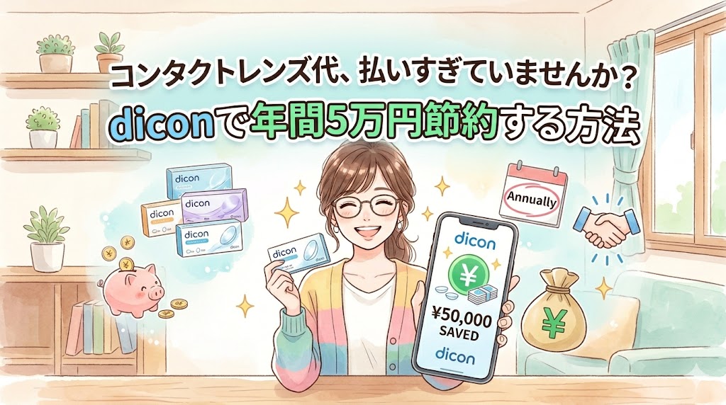この記事では、私が実際に乗り換えて年間約58,200円の節約に成功した月額制コンタクトサービス「dicon(ダイコン)定額制コンタクトレンズ」について、正直な感想・料金比較・デメリットも含めてすべて書きます。