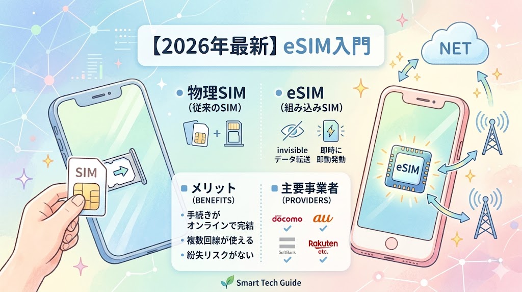 【2026年最新】eSIM入門|物理SIMとの違い・メリット・主要事業者の対応状況まとめ