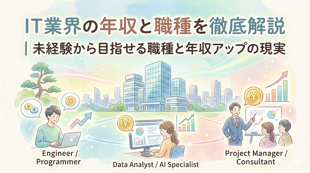 この記事では、未経験でIT業界に転職した私の実体験をもとに、IT業界の主要職種と年収レンジ、未経験から目指しやすい職種、そしてキャリアアップの現実をお伝えします。