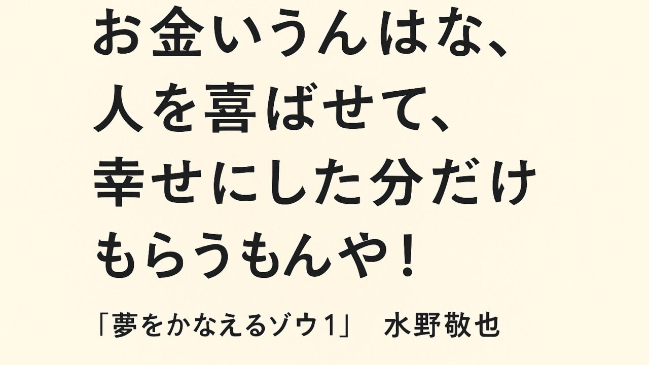 「お金いうんはな、人を喜ばせて、幸せにした分だけもらうもんや!」