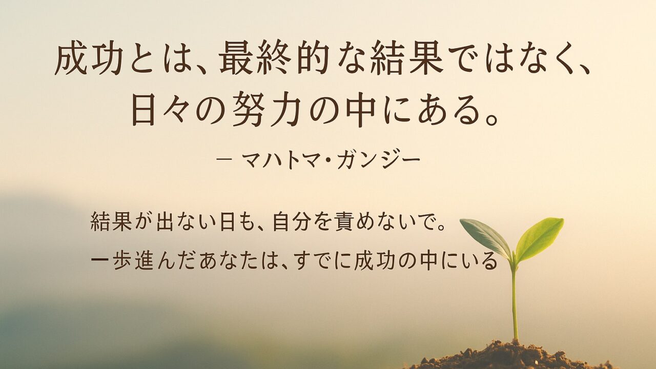 ガンジーは、成功とは「結果の有無」ではなく、「信じた道を歩き抜く姿」に宿ると説いています。