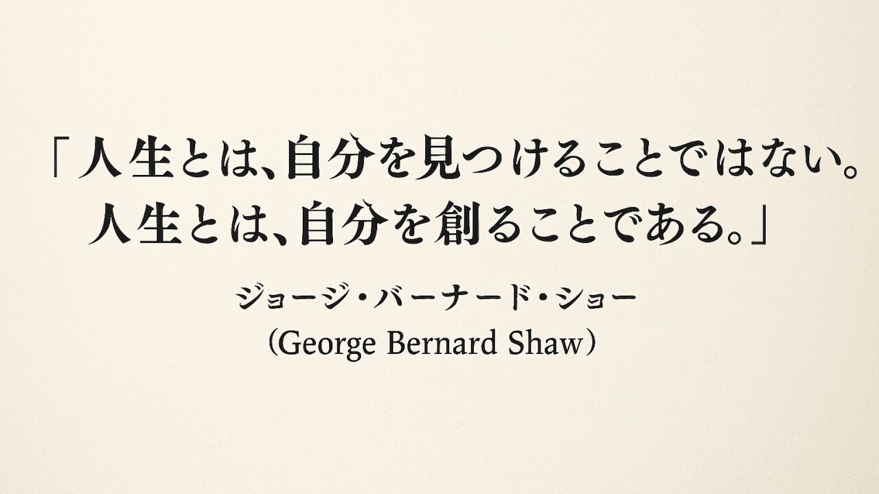 ショーのこの名言は、「自分探し」という受動的な行動ではなく、“自らの手で理想の人生を創っていこう”という力強いメッセージです。