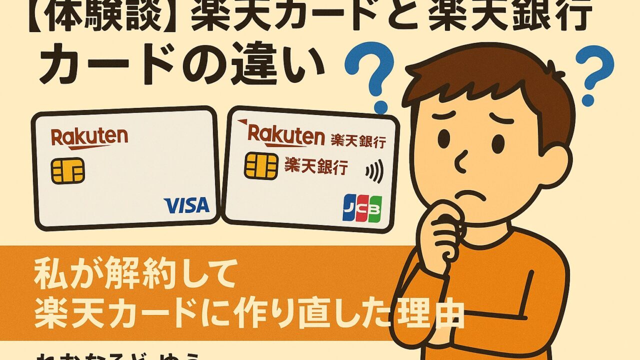 「楽天カード」と「楽天銀行カード(クレジット機能付きキャッシュカード)」――名前が似ているので、私自身どちらを選ぶべきか混乱してしまいました。実際に最初は楽天銀行カードを作ったのですが、使っているうちに不便さを感じ、解約して楽天カードに作り直しました。