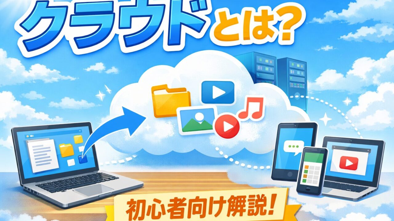 クラウドとは、データやアプリを自分の端末ではなくインターネット上に置いて使う仕組みのことです。